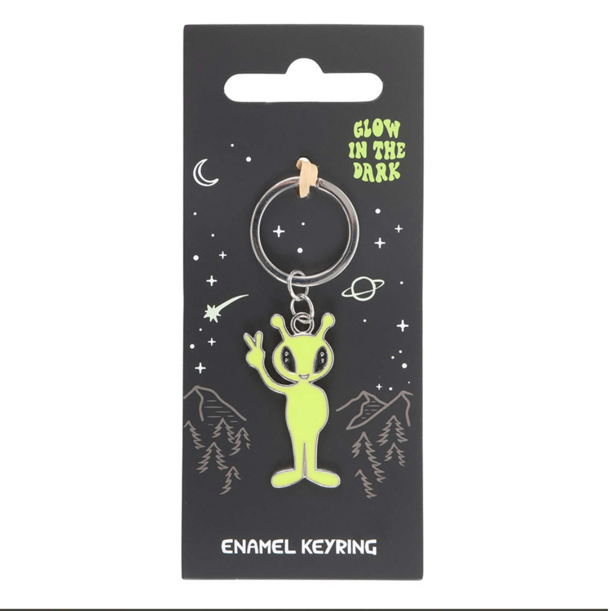 This glow in the dark alien keychain is your tiny extraterrestrial sidekick, ready to add a cosmic touch to keys, backpacks, or spaceship controls. Guaranteed to increase your chances of being spotted by passing UFOs.