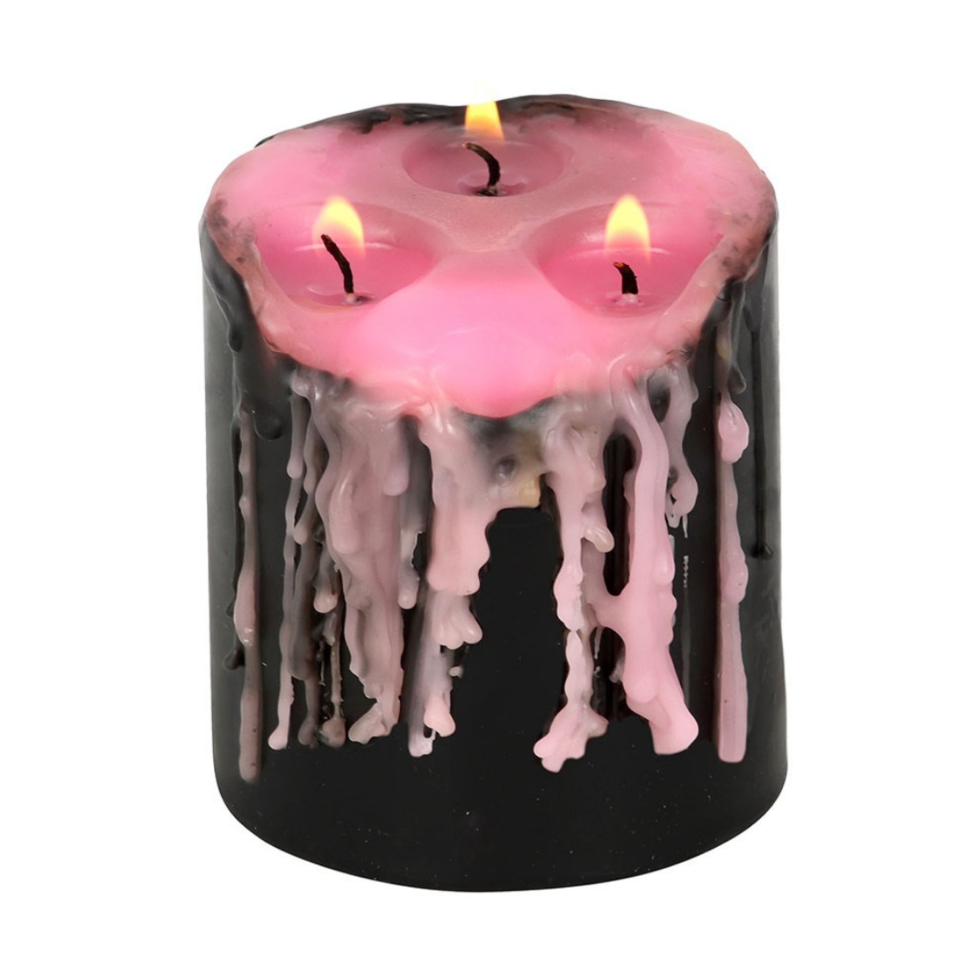 Add a pop of gothic glamour to your home with this small pink unscented pillar candle, which bleeds pink wax when lit for dramatic effect. A perfect d cor piece for creating a moody vibe or as a unique gift. Approximate 3 hour burn time.