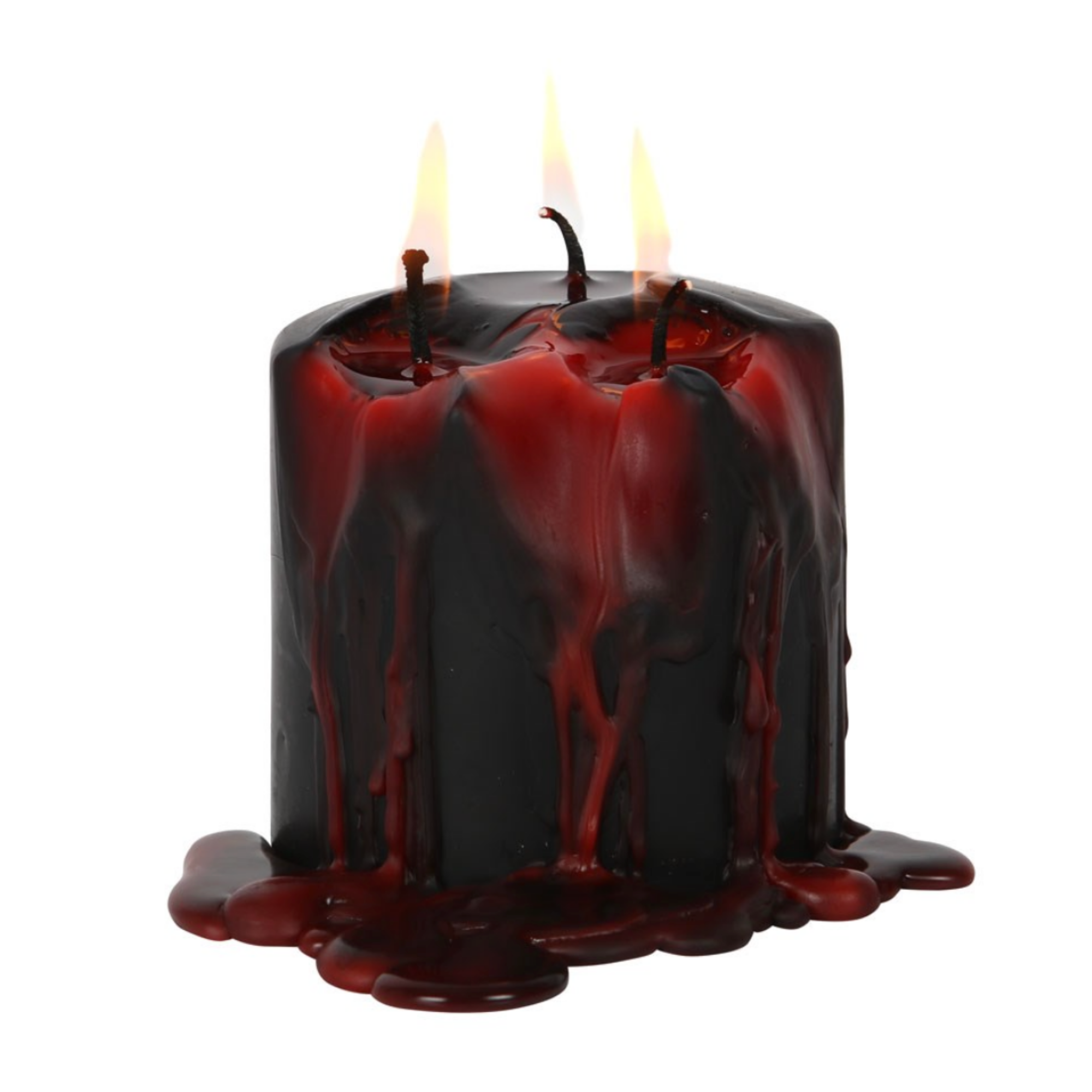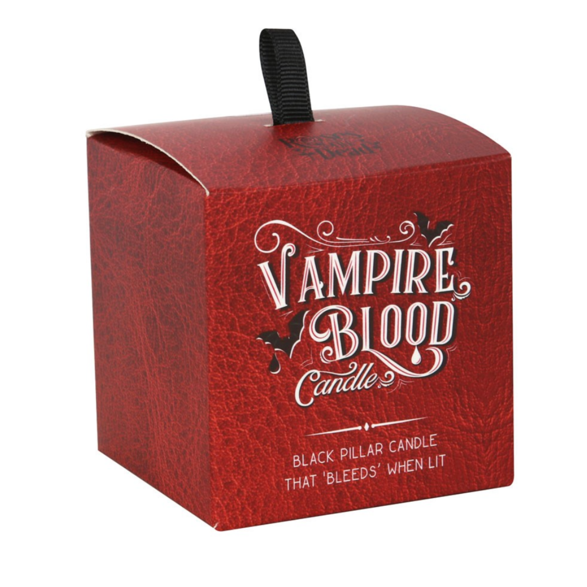 From candlelit dinners to eerie mood lighting, our small Vampire Blood pillar candle will entrance guests with its eye-catching, bleeding wax effect. Place this unique candle on an ornate pedestal holder for a truly bewitching display when the warm wax 'bleeds' down its sides. Approximately 3 hour total burn time. Unscented paraffin wax. Protect surfaces before burning and never leave lit candles unattended.